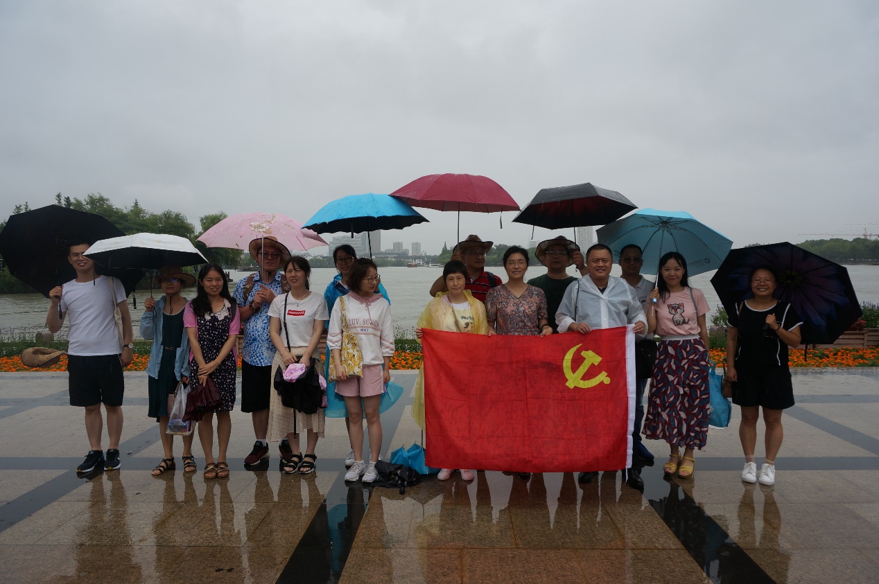 1921年7月,中共一大在上海秘密召开,后因受到法租界巡捕的袭扰而转移到嘉兴南湖的一艘小船上继续进行,并在这里完成了大会的各项议程,中国共产党庄严宣告诞生,从此,中国革命的航船从南湖扬帆启航,中国的历史开启了全新的篇章。学院全体党员瞻仰了南湖红船,驻足在湖心岛,聆听着党的革命历程和奋斗足迹,中共一大的历史点滴似乎在眼前重现,大家再一次深刻领会了红船精神的意义所在。党员同志们在党支部副书记贾红圣的带领下,在红船旁重温入党誓词,表达学院每一位党员坚定的决心和“不忘初心、牢记使命、永远奋斗”的坚定信念。