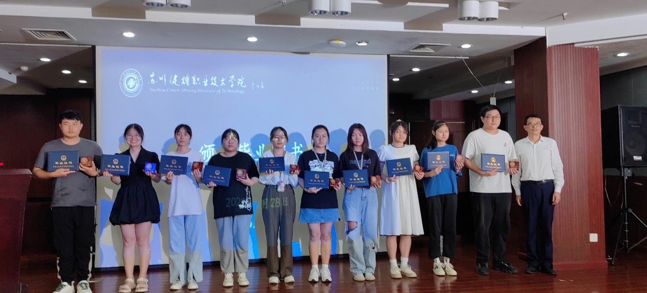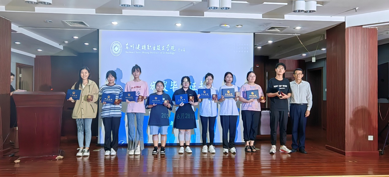周晓刚为毕业生颁发毕业证书和毕业纪念徽章