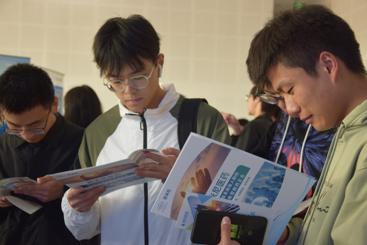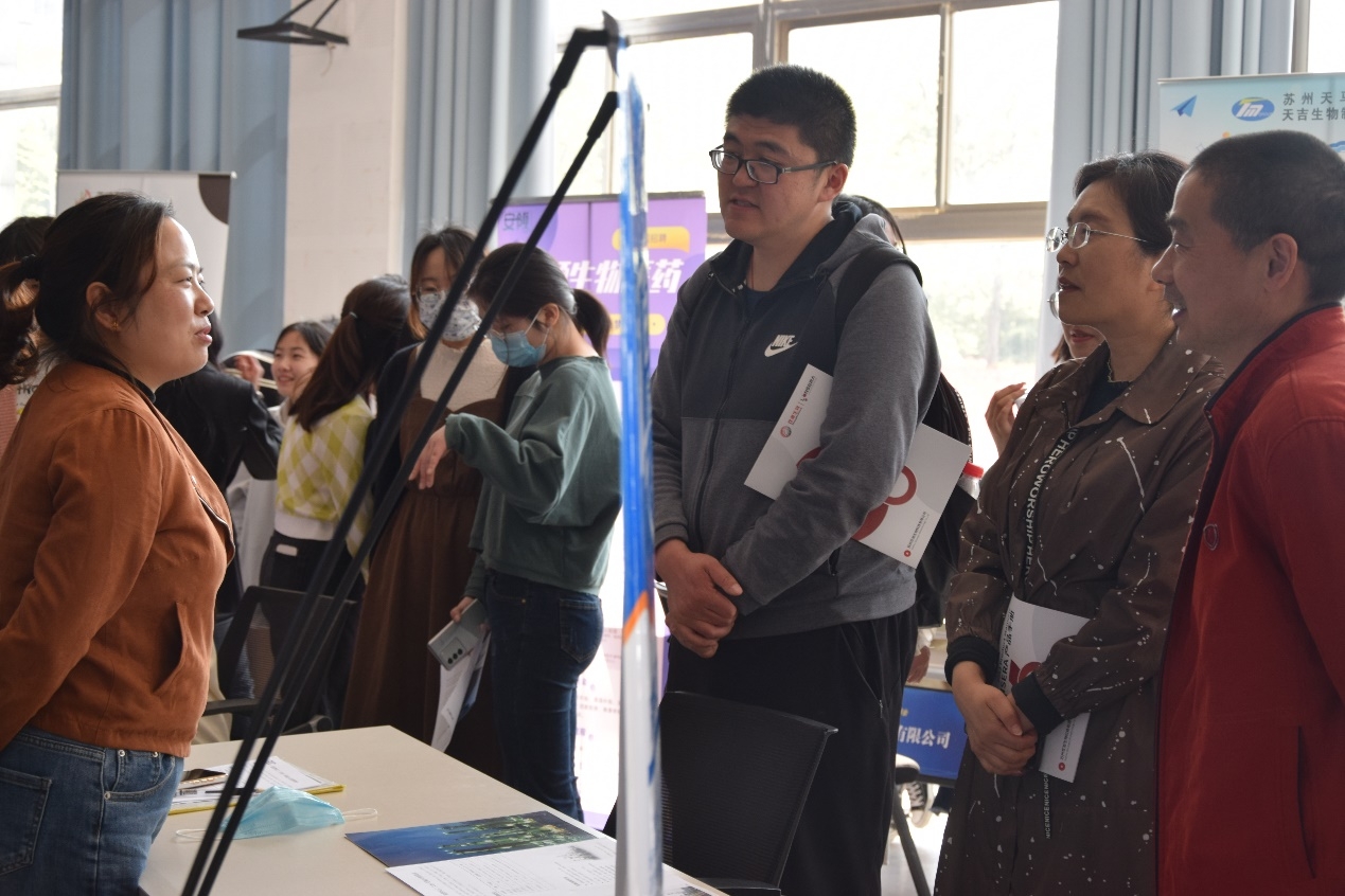 前来应聘的生物医药学院学生刘相闯说,他与太仓沙溪产业园的一个知名药企达成了初步的就业意向,借这次招聘会,他也对生物医药企业有了一个更加详细的了解,感到很开心。