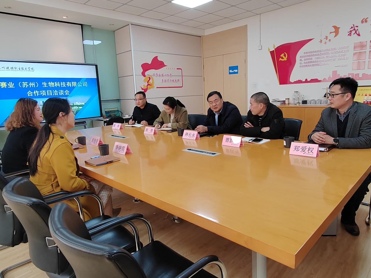 为深化校企合作、推进产教融合,提升人才培养质量,拓宽校企对接渠道,加强与优秀校友、企业的交流合作,推动毕业生高质量就业,3月12日,校长林长永带队和赛业(苏州)生物科技有限公司开展“访企拓岗促就业”专项行动。双元制学院副院长郑爱权、生物医药学院主要负责人参加座谈。