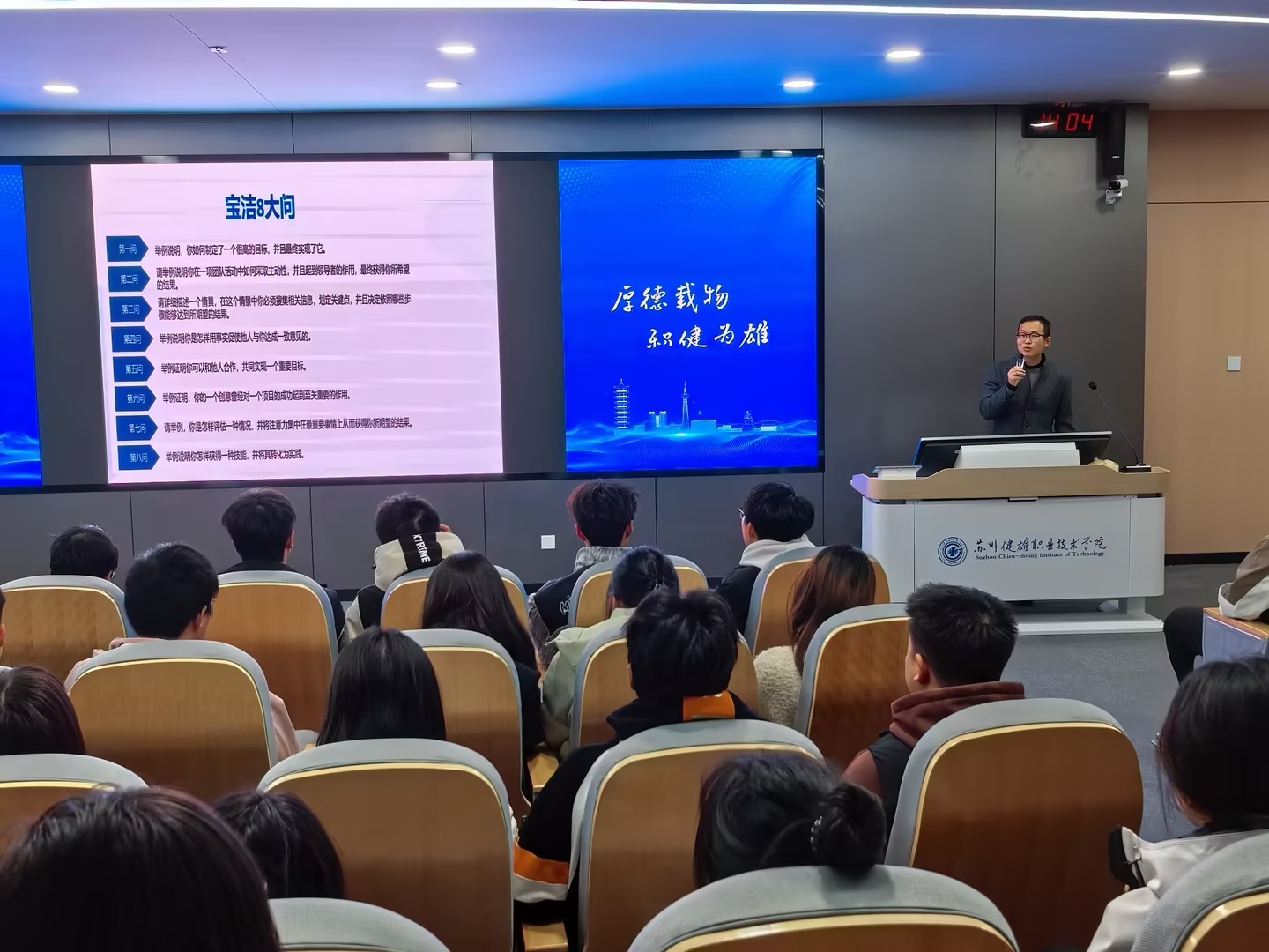 2025年3月18日下午,C3-101座无虚席,生物医药学院2012届分析检验专业毕业生、现任苏州环职检测技术有限公司高管的邵俊林应邀返校,为学弟学妹们带来了一场题为《从职场小白到管理精英的蜕变之路》的精彩分享。