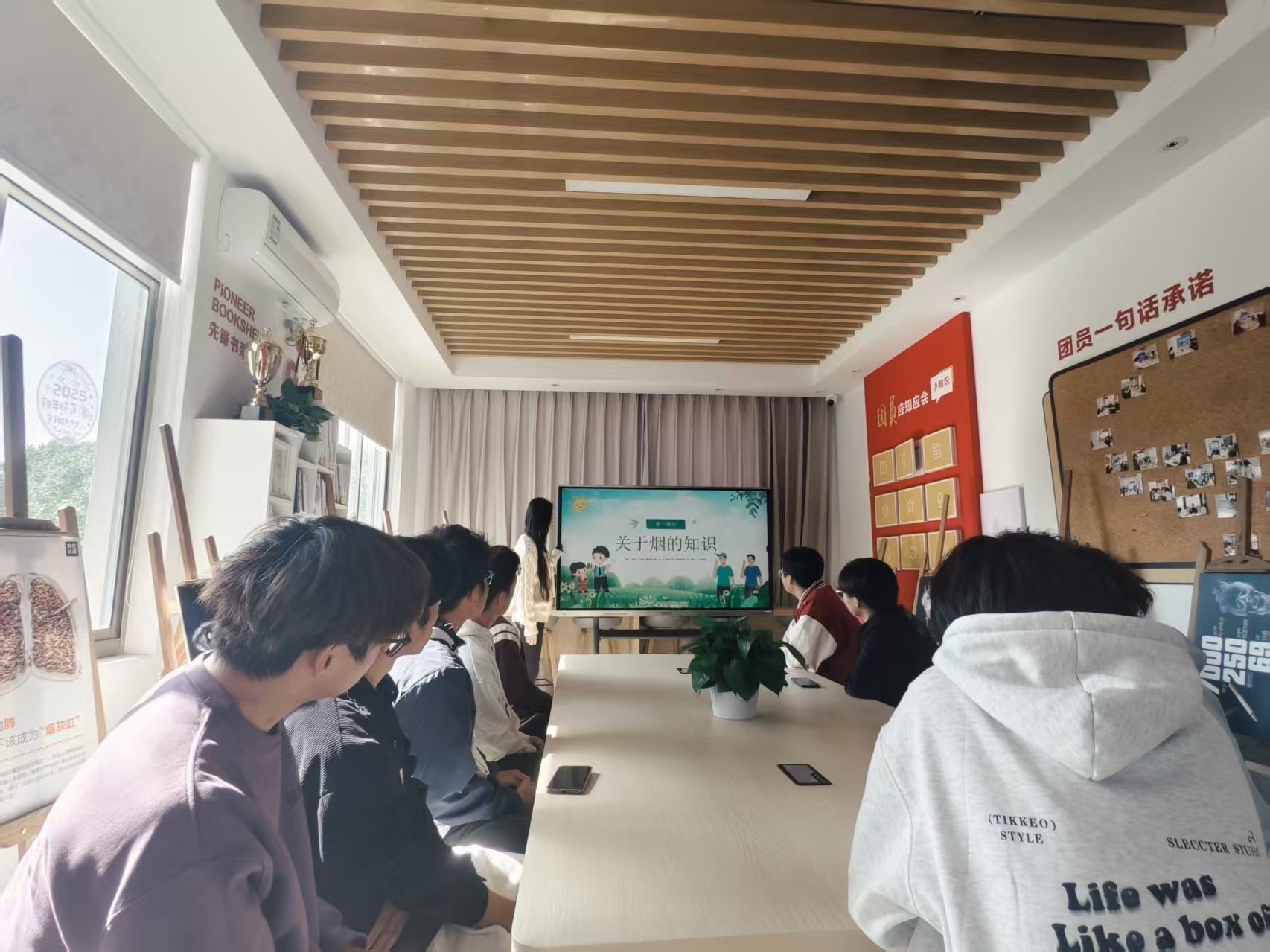 活动中,辅导员首先讲解香烟有害成分,系统披露吸烟的三重危害,并结合吸烟者心理特点进行引导,帮助学生树立正确认知。随后,师生围绕“校园内如何正确劝导吸烟者”展开讨论,进一步增强大家的责任意识与正义感。在图片展环节,直观的画面引发学生强烈共鸣。药品生产2511班朱家梁同学说:“相比文字,图片更有冲击力,肺里的烟、变色的牙齿让我更加牢记烟草的危害。”