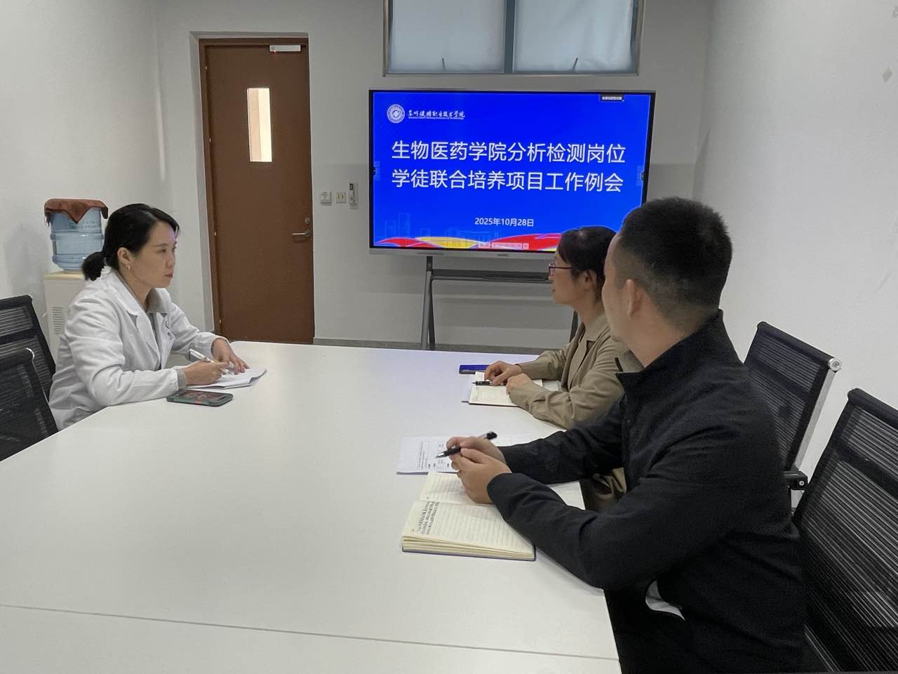 为了解双元制学徒专业课程学习情况,10月28日下午,生物医药学院组织召开了分析检测岗位学徒联合培养项目工作例会。此次工作例会由双元制工作小组2名老师和专业课程兼职教师、苏州泰坤检测技术有限公司田芳工程师参加。