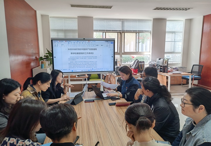 会上,学院院长周丽雅领学了《条例》全文,并结合学院实际,突出重点内容,详细解读条文。会议指出,《条例》对“党组织的设置、主要职责、纪律检查工作、党员的教育管理和发展、干部和人才工作、思想政治工作、党组织对群众组织的领导”等内容提出了明确的要求,以党章为基本依据,落实新时代党的建设总要求和新时代党的组织路线,对高校基层党组织工作作出了全面规范,是新时代高校党的建设的基本遵循。