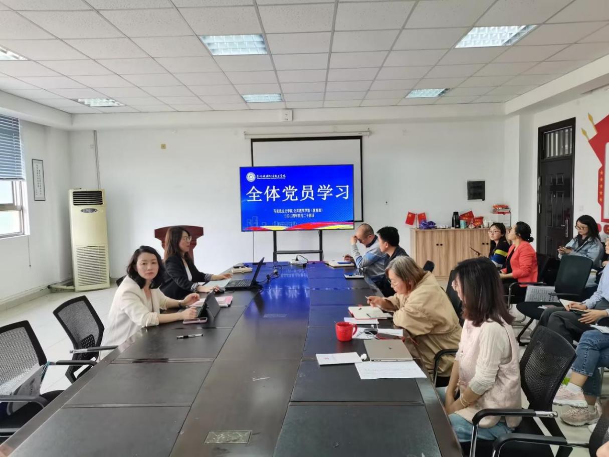 4月24日下午,马克思主义学院、公共教学学院(体育部)在C1-202部门会议室召开全体党员大会,具体两项内容:一是党员“七个一”教育实践活动推进会;二是启动党纪学习教育。马克思主义学院、公共教学学院(体育部)党总支副书记、副院长韩学芹及问鼎(中国)全体党员参会,会议由周丽雅院长主持。