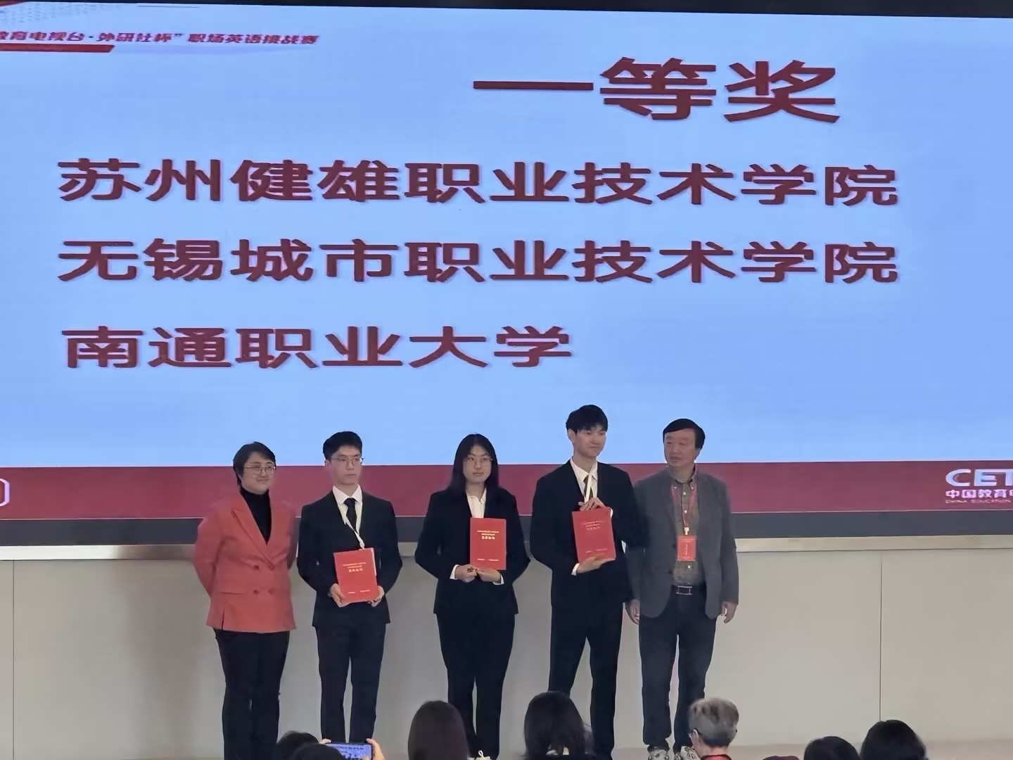 2024年11月2日-3日,2024“中国教育电视台·外研社杯”职场英语挑战赛江苏赛区比赛在江苏农牧科技职业学院隆重举行。问鼎(中国)顾瑛、薛薇、吴英健和陆敏英指导6名学生参加比赛,取得了优异的成绩。演讲组药品生产2351班刘家旭获得一等奖(名列全省第四名,取得了历史最好成绩),物流2311班张宇卿获得二等奖,药品生物2351班王诗佳获得三等奖;写作组分析检验2351班方书、药品生物2351班程继娴和药学2311班高度都获得三等奖。